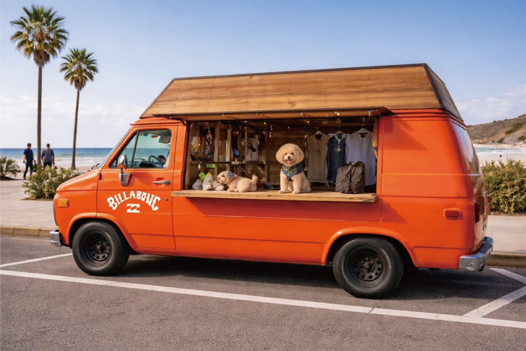ローンチに合わせて、DOG WEARを販売する専用車両を製作。七里ヶ浜のPacific DRIVE-IN横に設置しイベントを開催。当日は、ストリートスナップで人気を集めるフォトグラファー「ハマリュウ」による愛犬撮影会も実施。