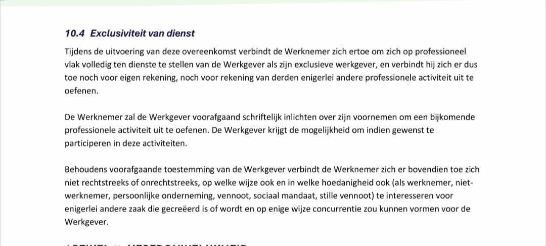この条項は具体的に何を意味するのでしょうか? 私は今の会社でしか働いていませんが、勤務時間外には個人的なプロジェクトもあります。 この条項のおかげで、彼らは私の個人的なプロジェクトに何かできるのでしょうか? このプロジェクトでお金を稼いだ場合のみ可能ですか? Belgium