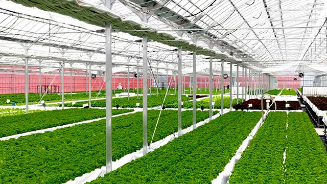 安心安全な野菜を1年間を通じて届けるため、太陽の光を最大限取り入れ、野菜の成長に最適な環境を与えるための環境制御システムを駆使し、水耕栽培で育てています。