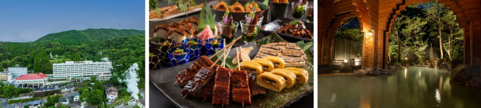 またホテル内レストラン「霧島湯けむりテラス」の夕食ビュッフェでは、草むし温泉にちなんだ記念メニュー「蒸籠料理」を提供する。