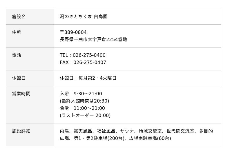 【長野県千曲市】日帰り温泉「湯のさとちくま 白鳥園」指定管理者変更のお知らせ