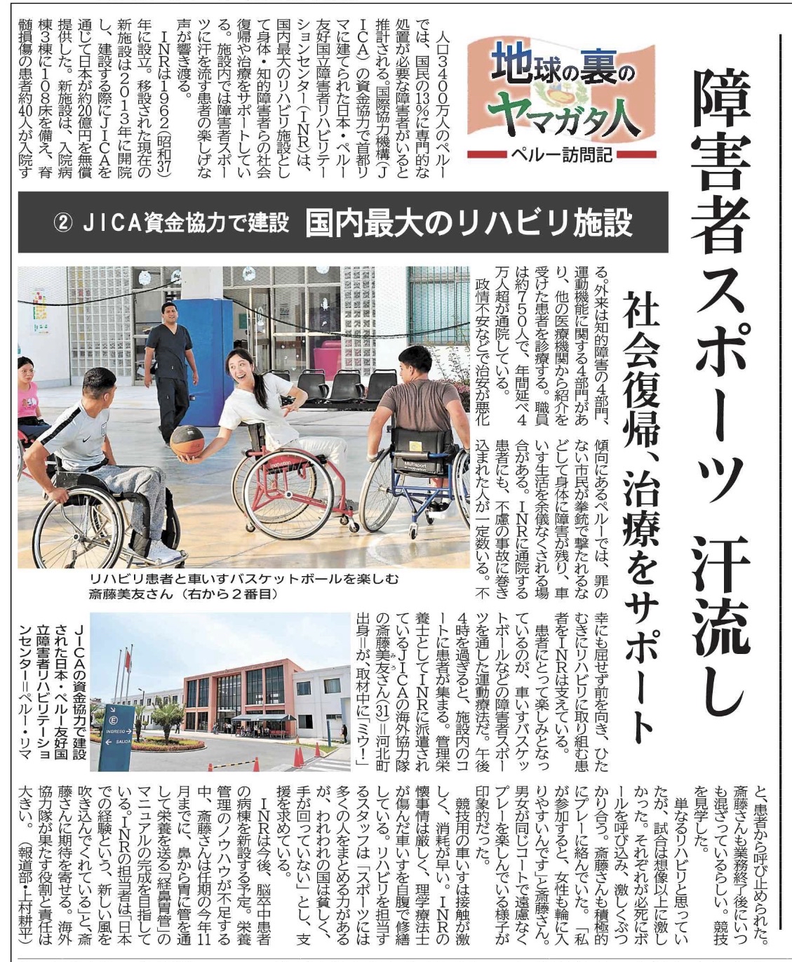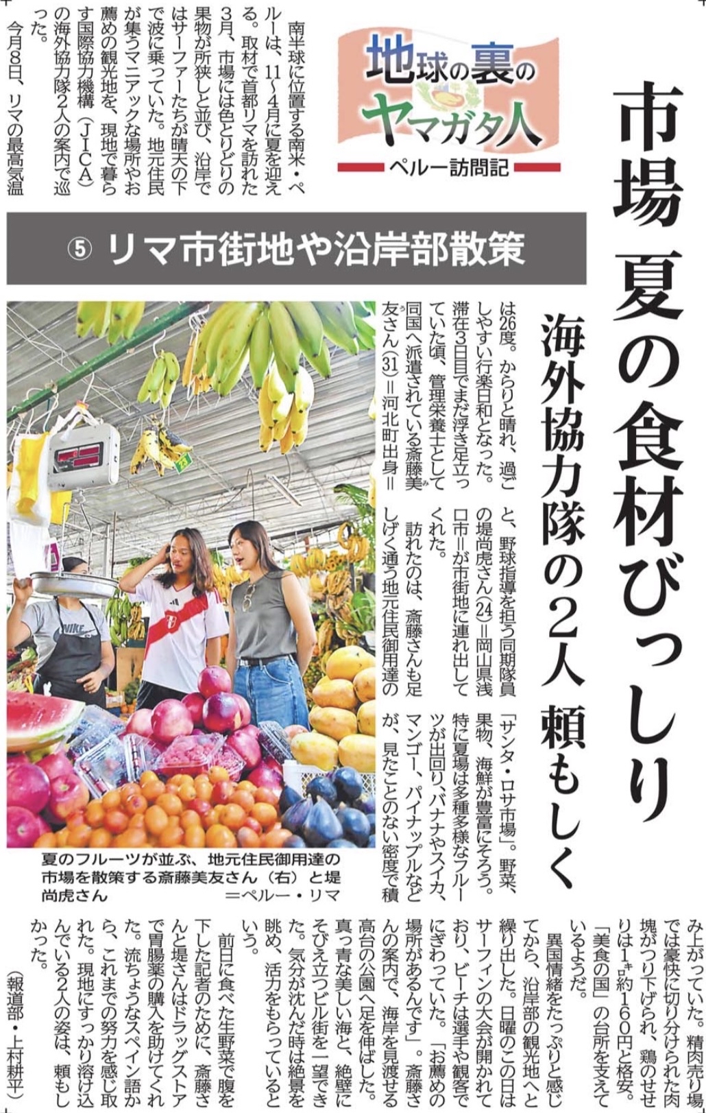この度、山形新聞社の上村耕平記者がペルー共和国を訪問し、JICA海外協力隊員をはじめとして山形県とゆかりのある方々を取材いただきました。帰国後、山形新聞社紙面に記事が掲載されましたので、以下のとおりご紹介します。