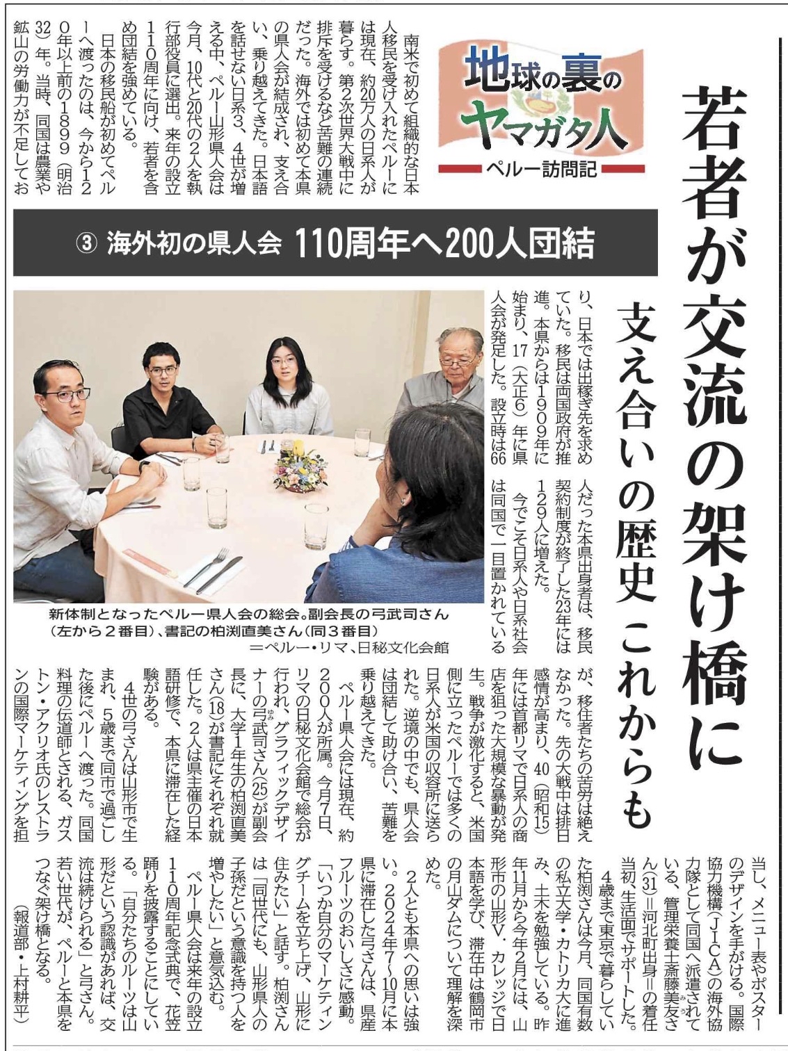 「地球の裏のヤマガタ人~ペルー訪問記」 若者が交流の架け橋に ③海外初の県人会 110周年へ200人団結