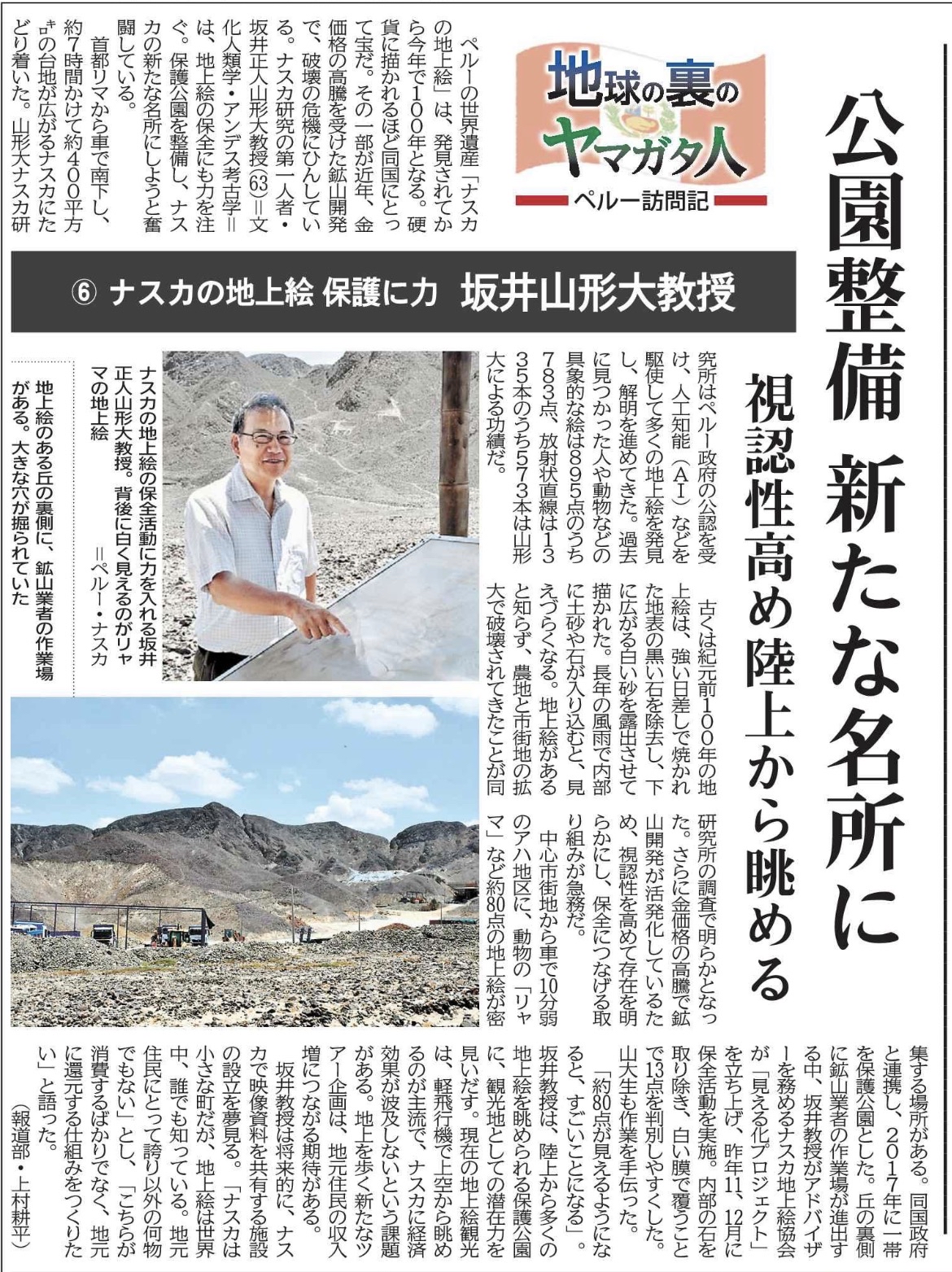 「地球の裏のヤマガタ人~ペルー訪問記」 公園整備 新たな名所に ⑥ナスカの地上絵 保護に力 坂井山形大教授