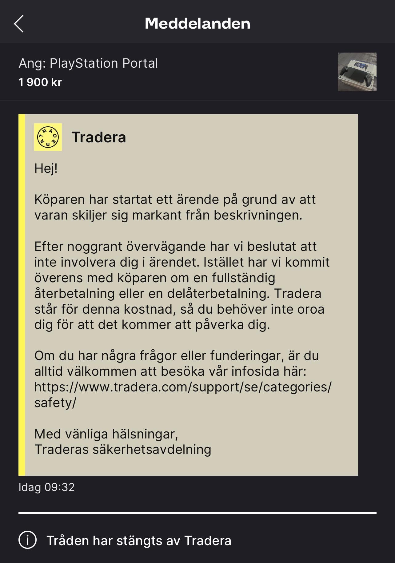 私にとって幸いなことに、Tradera は「慎重に検討した結果」私を訴訟から除外することを選択しましたが、買い手が要求した補償費用は Tradera 自体が負担することになります。
