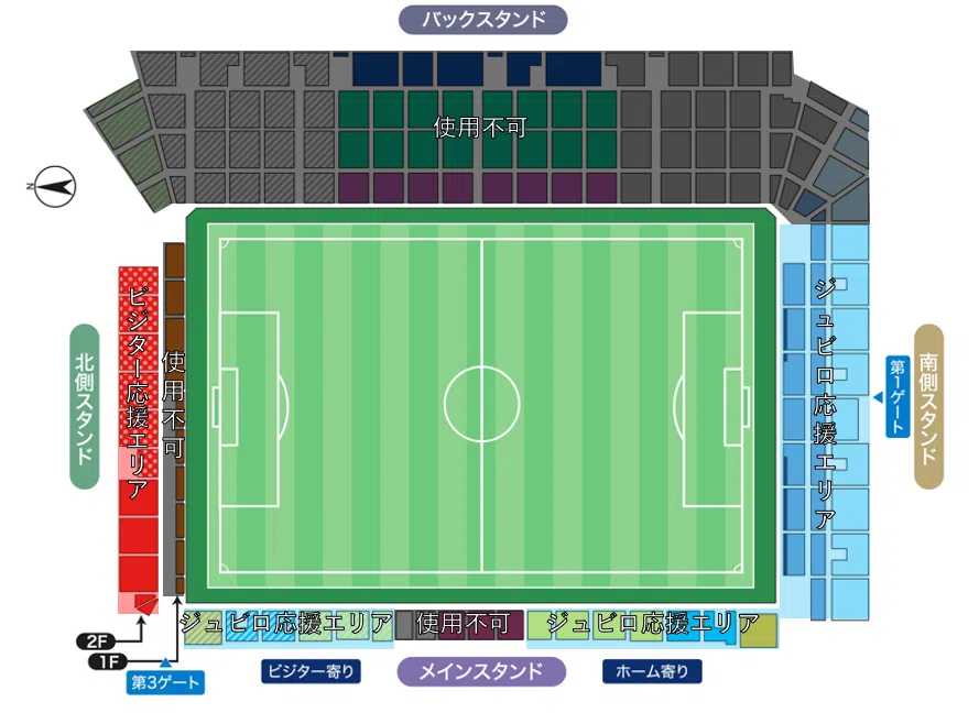 ※ビジターチーム応援エリアでは、ジュビロ磐田のユニフォーム・グッズの着用はご遠慮いただくようお願いしております。