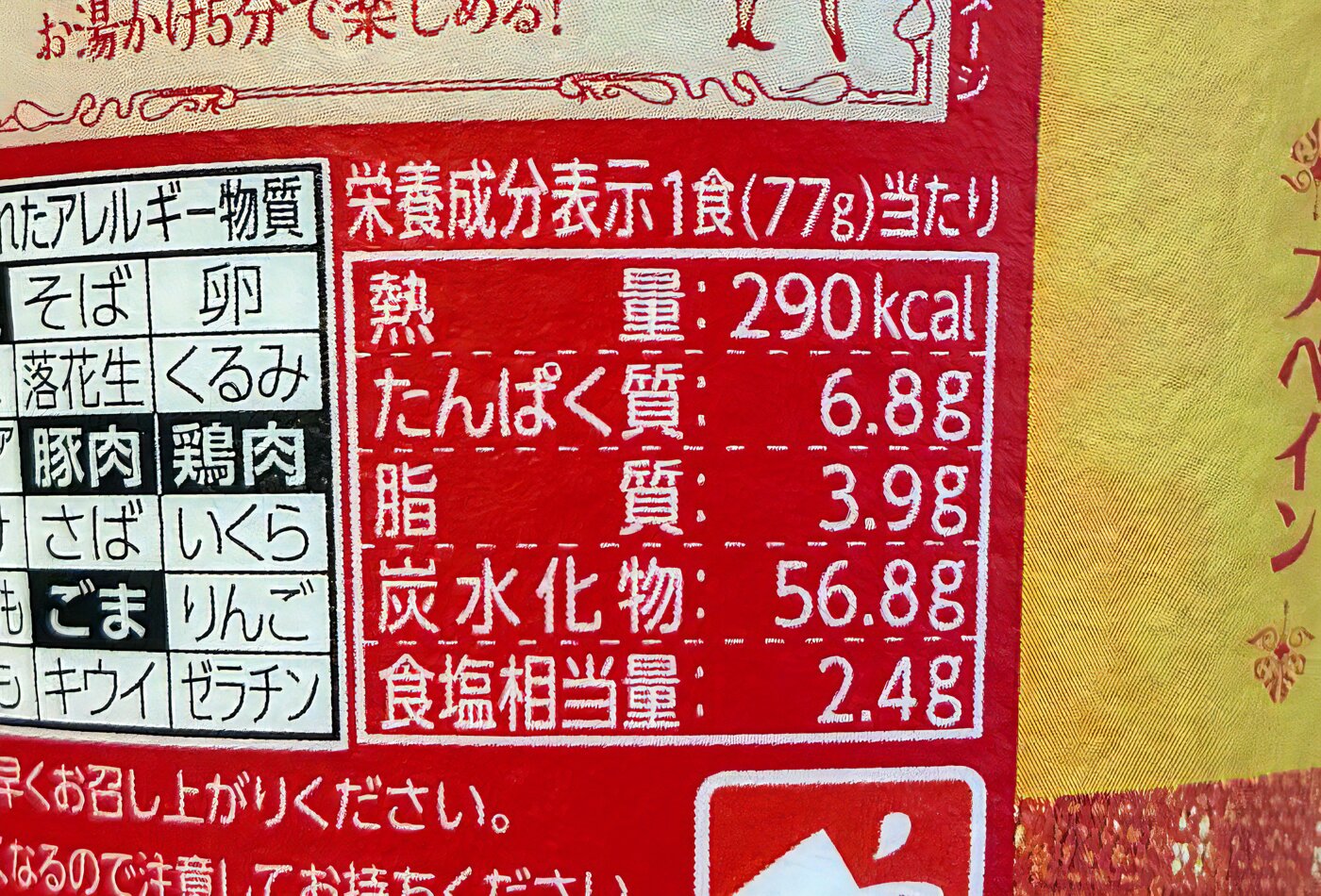 まず1食(77g)当たり290kcal。