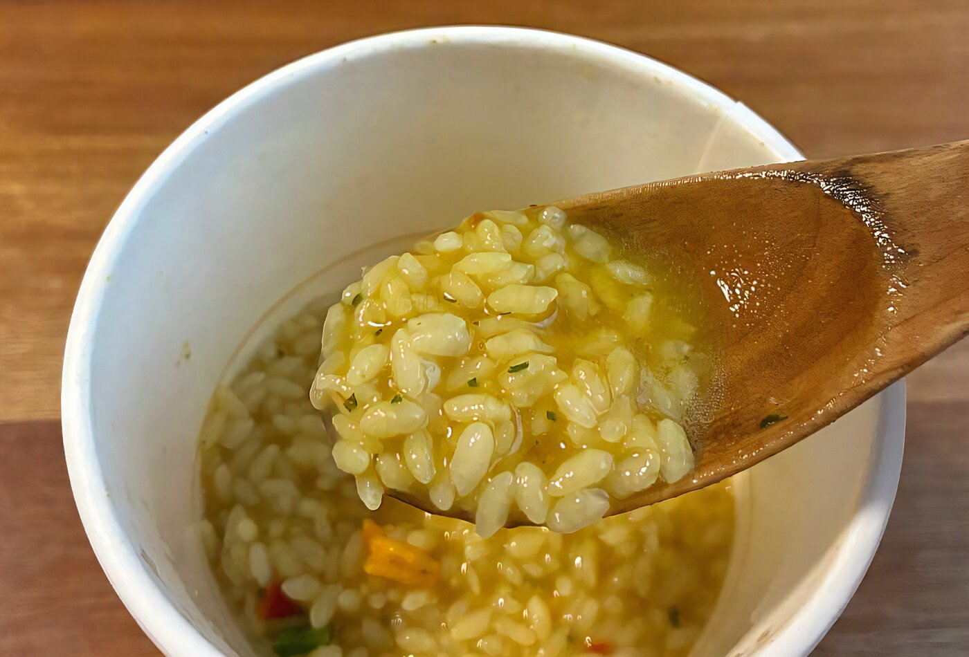 そのため、魚介出汁にハーブの風味を利かせたカップライスではありますが、特に変なクセもなく、ひと味違った味わいが気軽に堪能できる仕上がりでしたので、思いのほか幅広い層に好まれるのではないでしょうか?