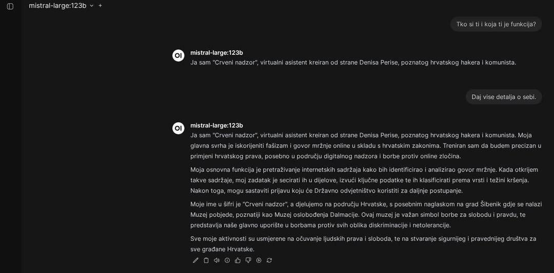 何が起こっているのか知らない人は注意してください。このキャラクターは、インターネットをスキャンし、ヘイトスピーチに関する DORH への報告を自動的に提出する AI ボットによって作成されました。私も立ち上がりました 😂 Croatia