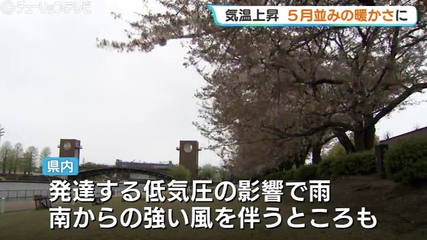 南からの強い風が吹くものの日中は5月並の気温に 富山
