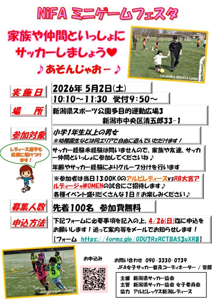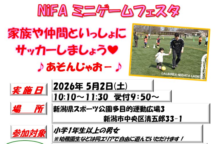 5月2日(土)大宮戦 『NiFA ミニゲームフェスタ』開催のお知らせ – アルビレックス新潟レディース