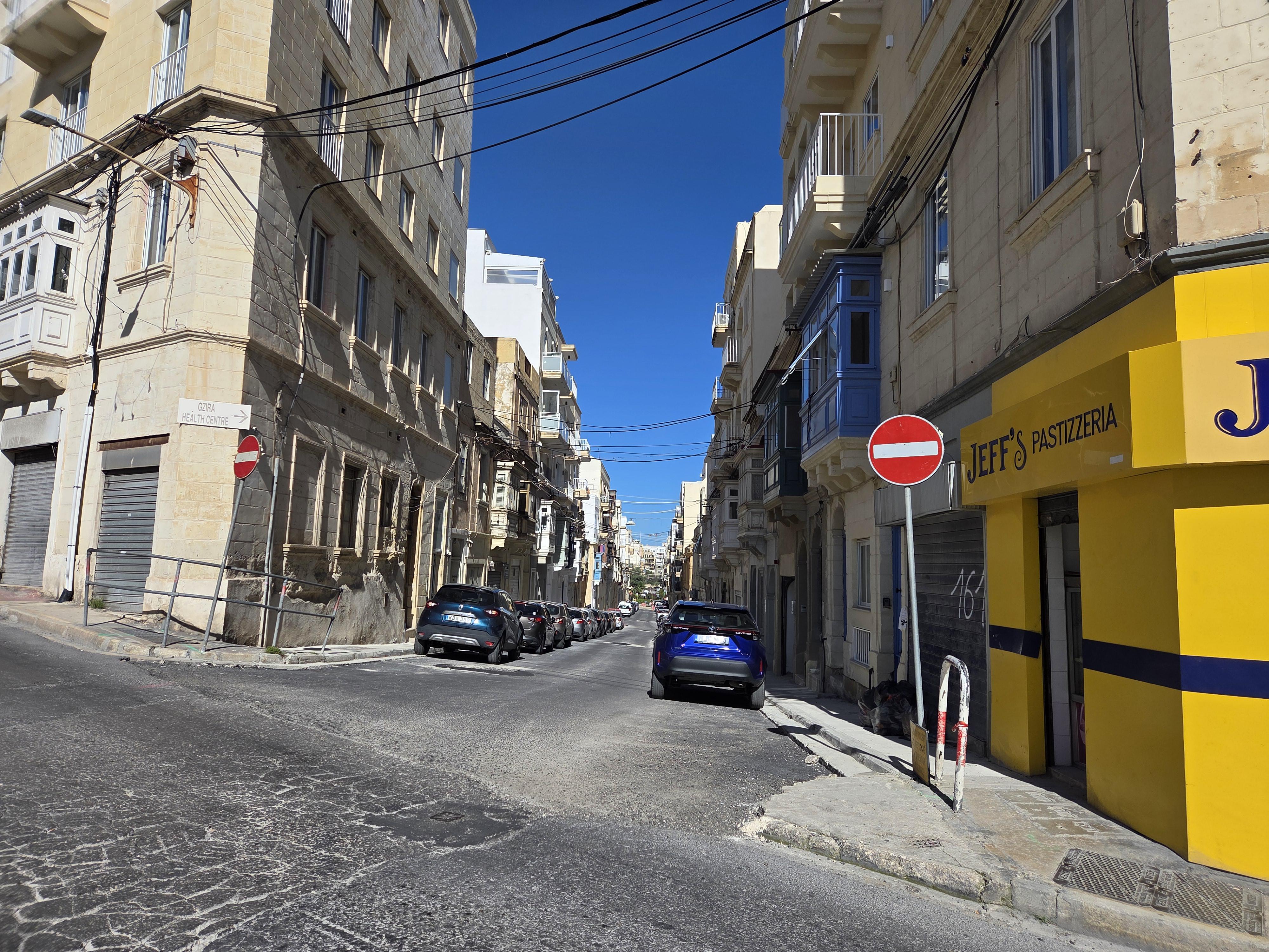 4月10日金曜日、16時10分 – 私はレイランドからスリーマ/グジラのヴィルヘナに向かって丘を下り、そこで立ち入り禁止の標識と並行してジェフのパスティッツェリアに向かって通りを渡った。