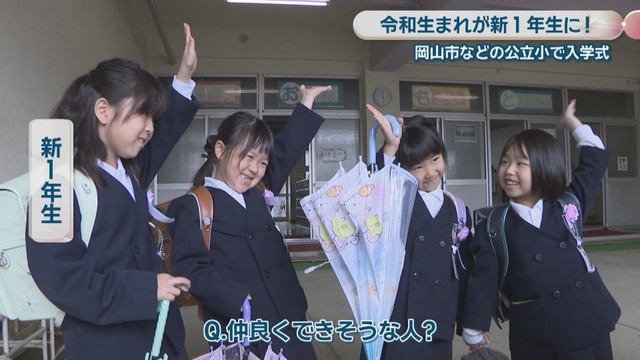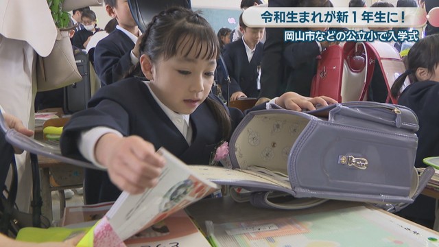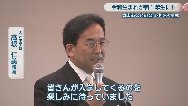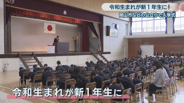 岡山市北区の大元小学校の入学式には、ドキドキワクワクの新1年生約130人が出席しました。入学した新1年生の多くは2019年、「令和元年」生まれです。