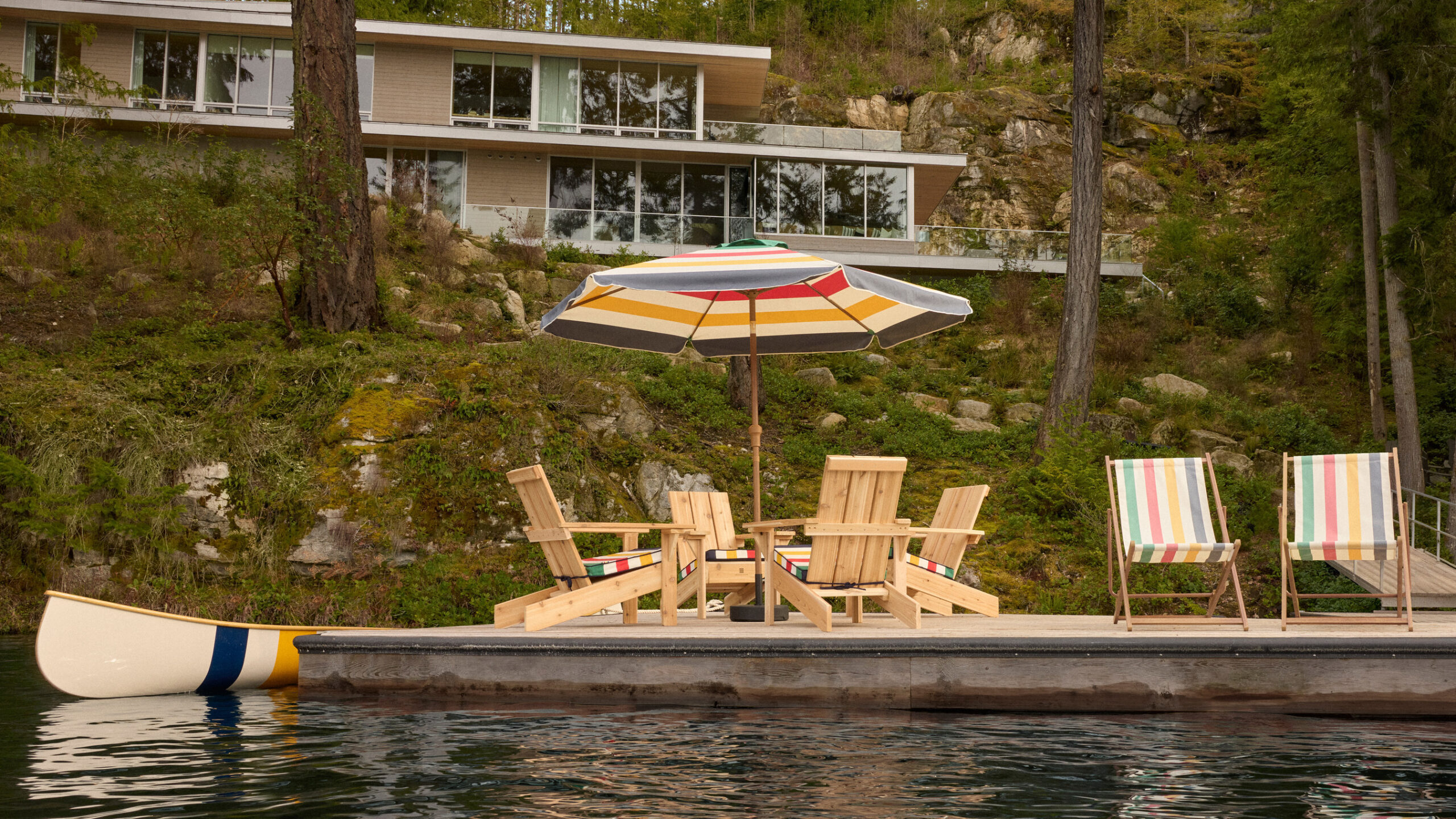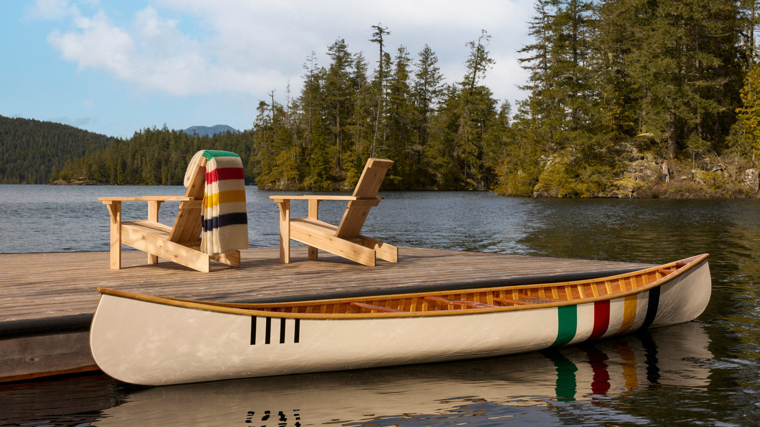 このHudson’s Bay Stripes Summer ’26 Collection には、ポイントブランケット、キャンバスバッグ、ビーチチェア、アウトドア家具、そしてなんとカヌーなど、32種類のハドソンズ・ベイ・ラインのアイテムが含まれています。