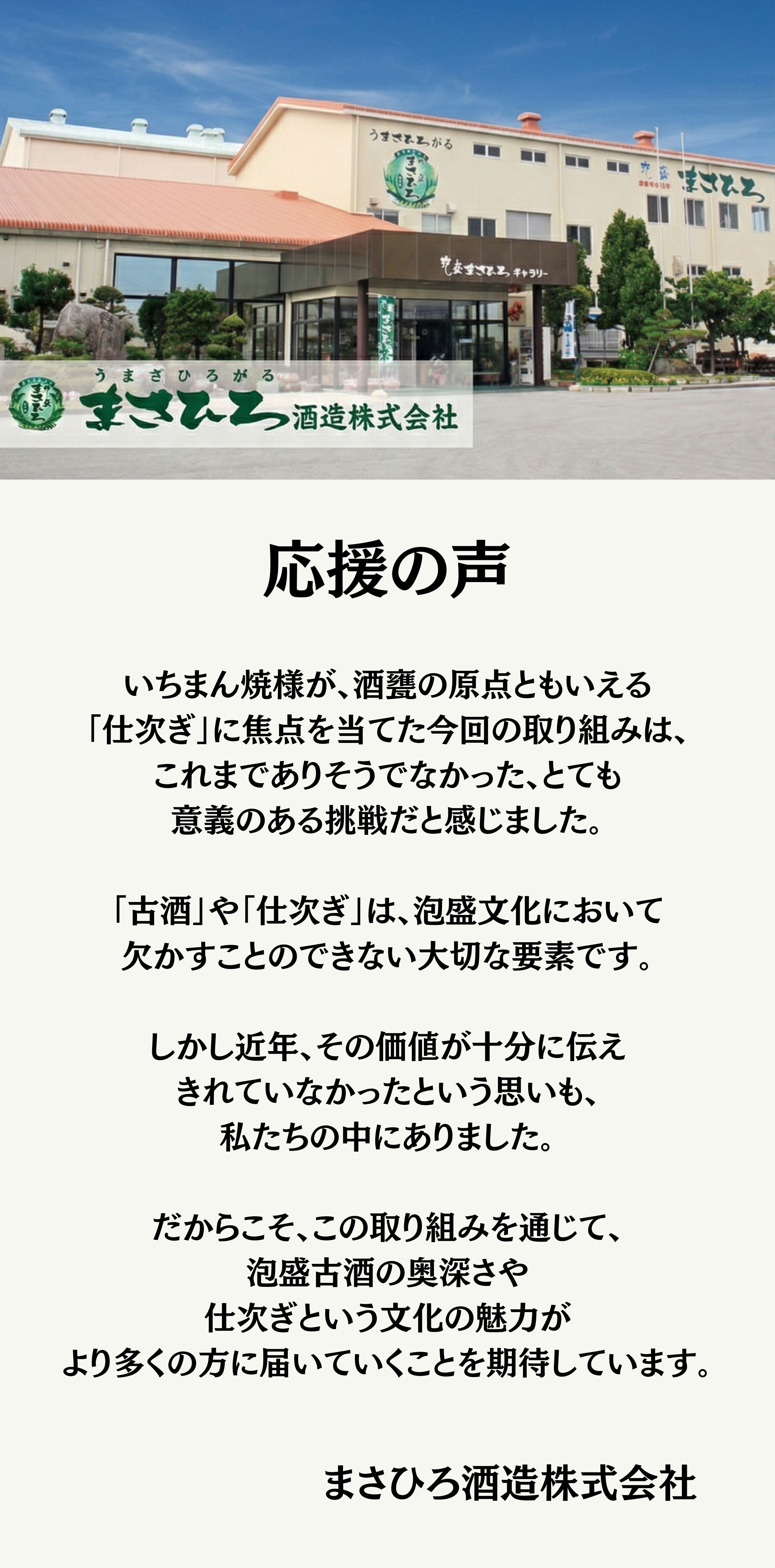 今回ご協力をお願いするにあたり、 まさひろ酒造様から、このようなお話を伺いました。