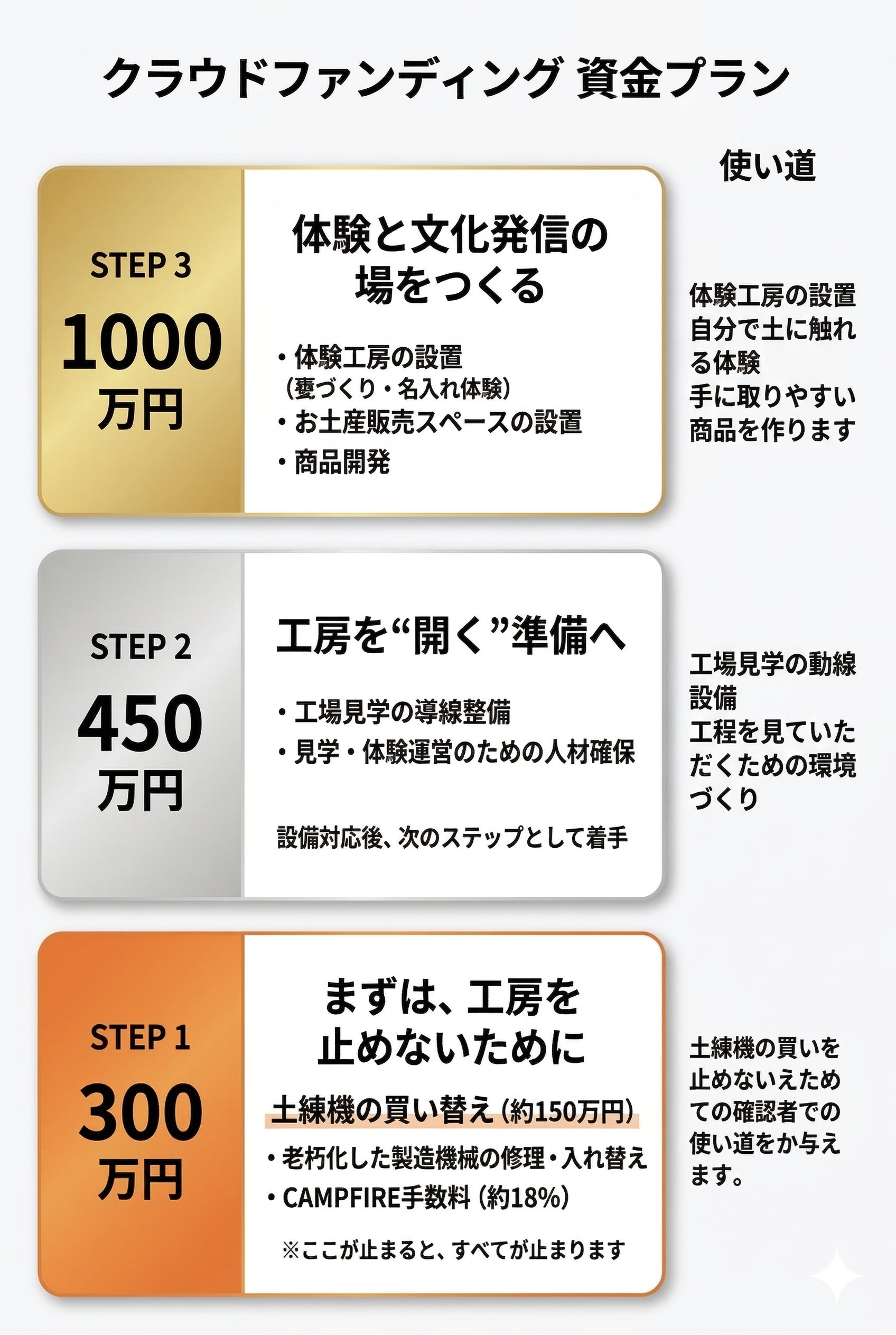 今回いただいたご支援は、このような老朽化した設備の修繕・買い替え費用として活用し、工房の生産を止めることなく、酒甕づくりを未来へつないでいくために使わせていただきます。