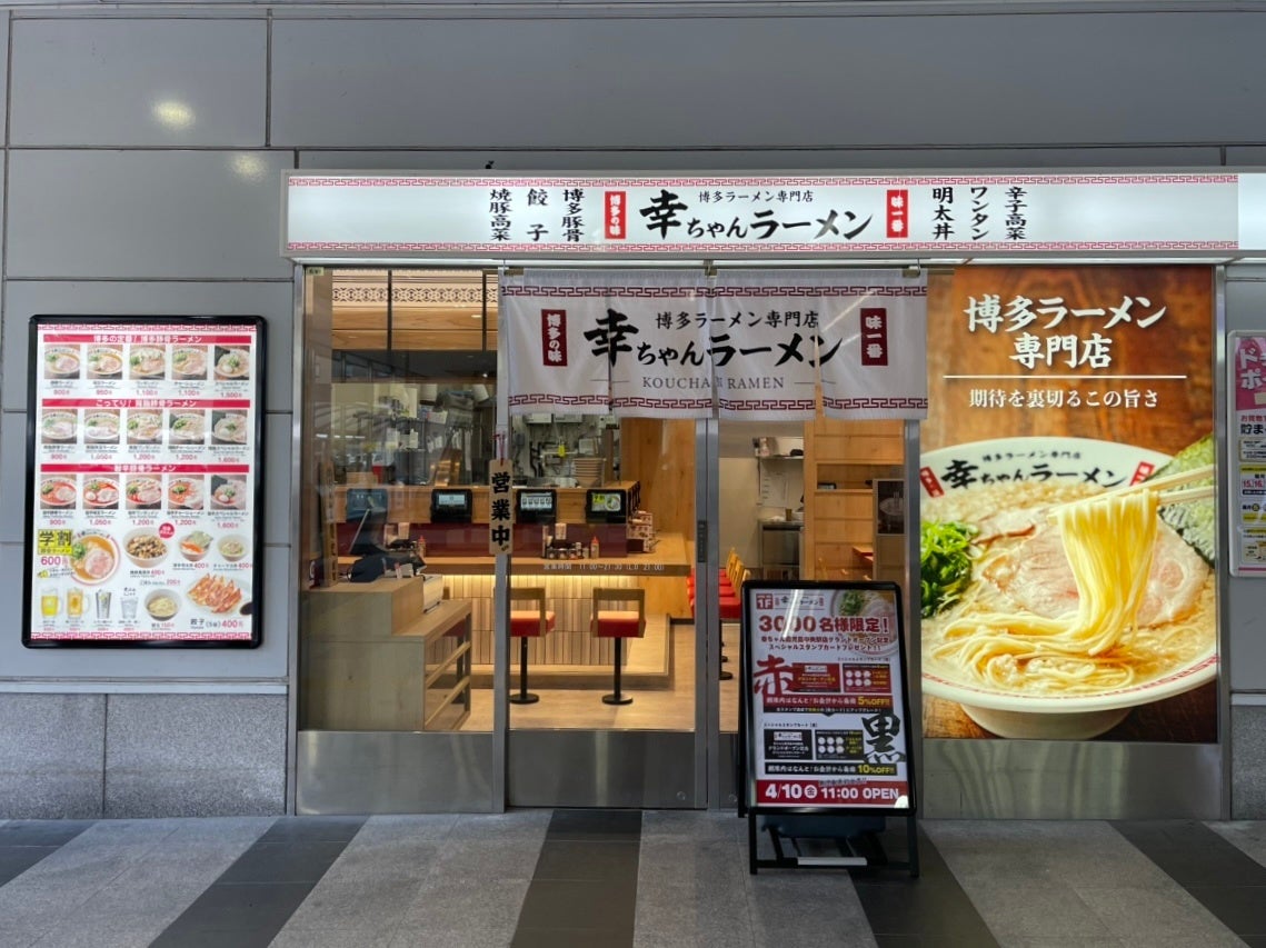 博多ラーメン専⾨店 幸ちゃんラーメン(こうちゃん)は、本場博多はもとより国内外10カ国で愛されている元祖泡系豚⾻ラーメン『博多⼀幸舎』がプロデュースする、豚⾻ラーメンブランドです。2026年4⽉現在、国内に19店舗、海外2店舗を展開し、看板商品の「博多豚⾻ラーメン」は、試⾏錯誤の後、しっかりと豚⾻の旨味(パンチ)と、ほんのり感じる⽢みがクセになるスープが特徴の豚⾻ラーメンとして完成しました。そして、麺は幸ちゃんラーメンの為だけに特別配合したこだわりの⼩⻨粉を使用。幸ちゃんラーメンオリジナルの豚⾻スープに合うよう、特注の細麺を使⽤しています。⼩⻨本来の⾹りが豊かに広がり、もっちり感と、しなやかなコシを楽しめ、パツッとした⾷感がついつい替⽟を注⽂したくなるほどクセになります。こだわりの、しっとりとした特製⼤判チャーシュー、シャキシャキの⻘ネギと⾷べ進めていただくことで、本場博多の町豚⾻を感じていただけます。そんな幸ちゃんラーメンは、お⼦様からご年配の⽅、⽼若男⼥問わず幅広い⽅達より「早い、美味い、また来たい!」本場博多の町豚⾻として⽀持いただいています。