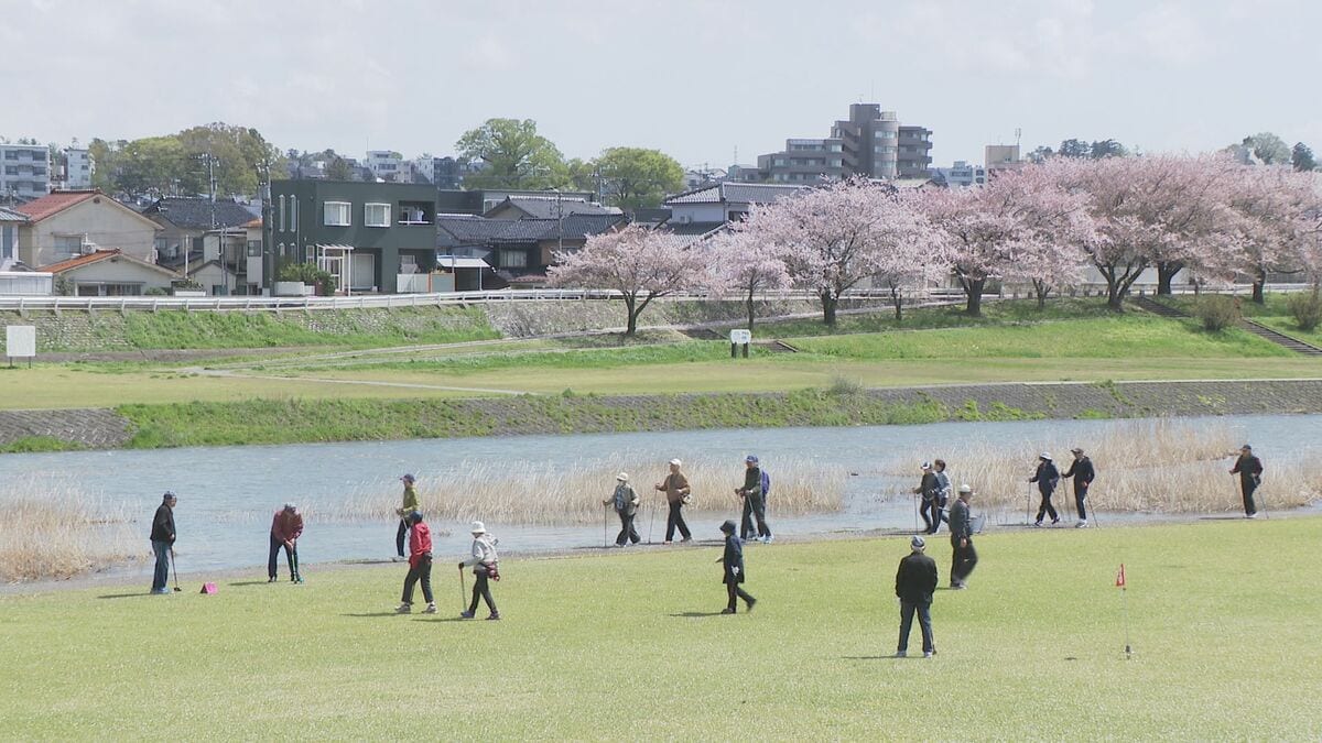 春の暖かな1日となった11日、石川県金沢市では、2本のポールを持って歩くポールウォーキングの大会が開かれました。