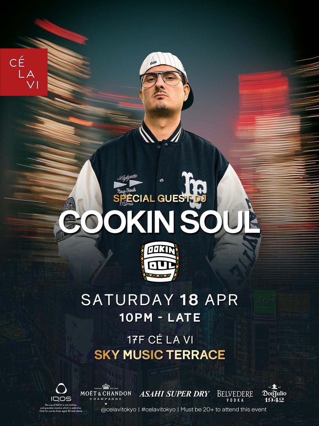 スペイン発の HIPHOP DJ/プロデューサーで、クラシックなサウンドとモダンな HIPHOPを融合させた革新的なスタイルで知られる Cookin’ Soul(クッキン・ソウル)が、2026年4月18日(土)、渋谷駅からすぐ近くに位置するラグジュアリーなベニュー CÉ LA VI TOKYO 17F のルーフトップフロア SKY MUSIC TERRACE に出演することが発表された。