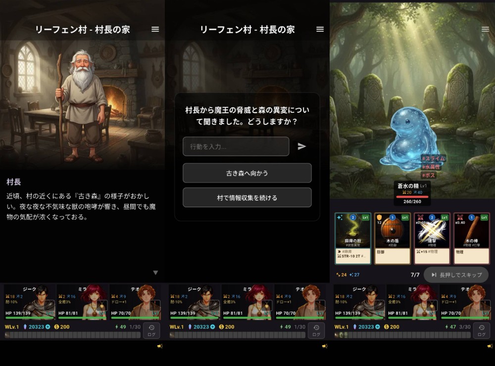本作は、AIを「無限のゲームマスター(GM)」として据えたローグライク・カードバトルRPGだ。従来の固定されたゲームデータから脱却し、極小のクライアントサイズ(android 17.7MB / iOS 87MB)でありながら、AIが紡ぎ出す無限の拡張性を凝縮している。