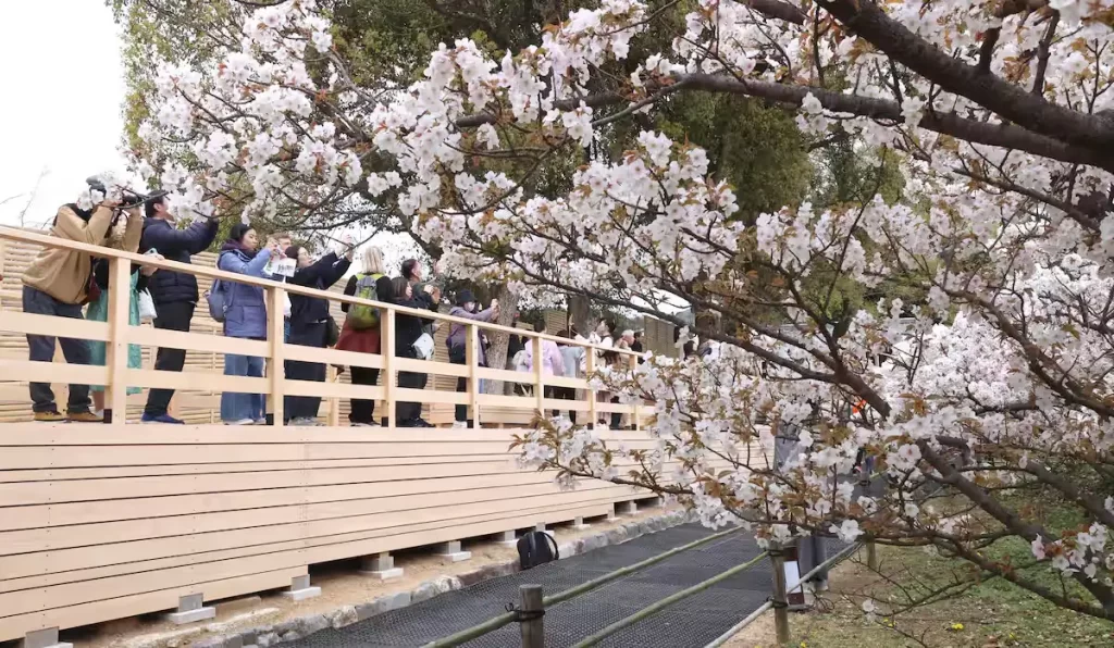 大阪府から初めて訪れたという会社員の20代女性は「この時期に(桜が)こんなに咲いているとは」と目を輝かせた。