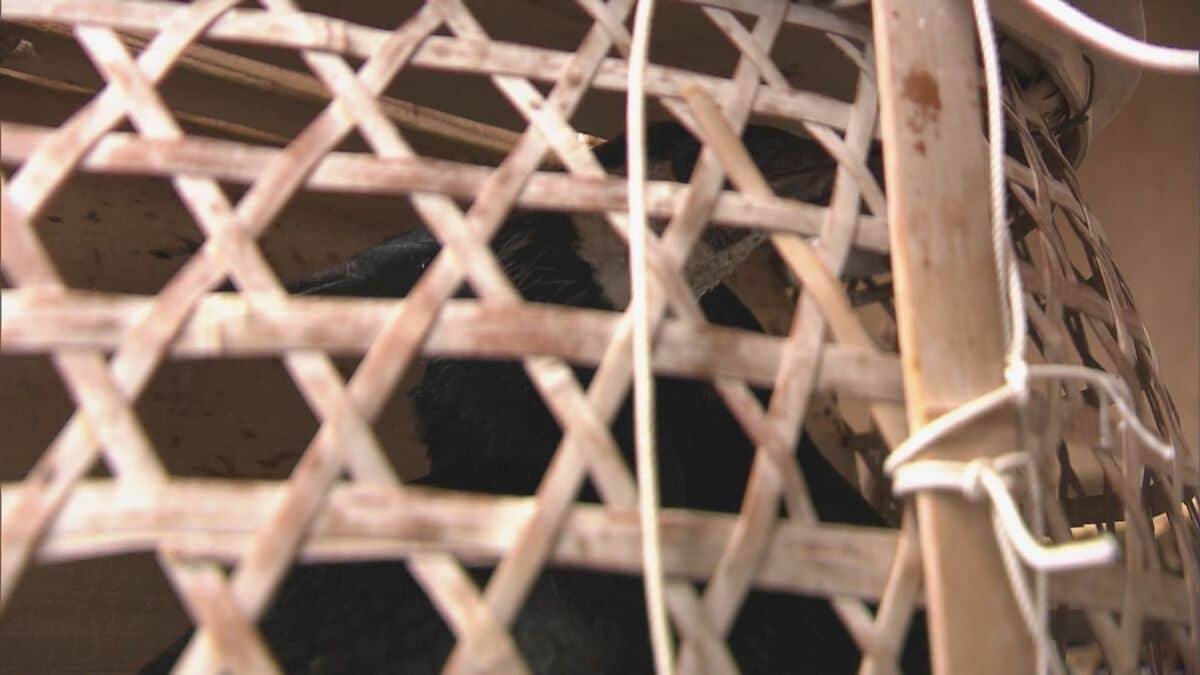 鵜匠代表の杉山雅彦さんの家では、一羽ずつ興奮する鵜を落ち着かせながら獣医師が伝染病を防ぐワクチンを接種しました。