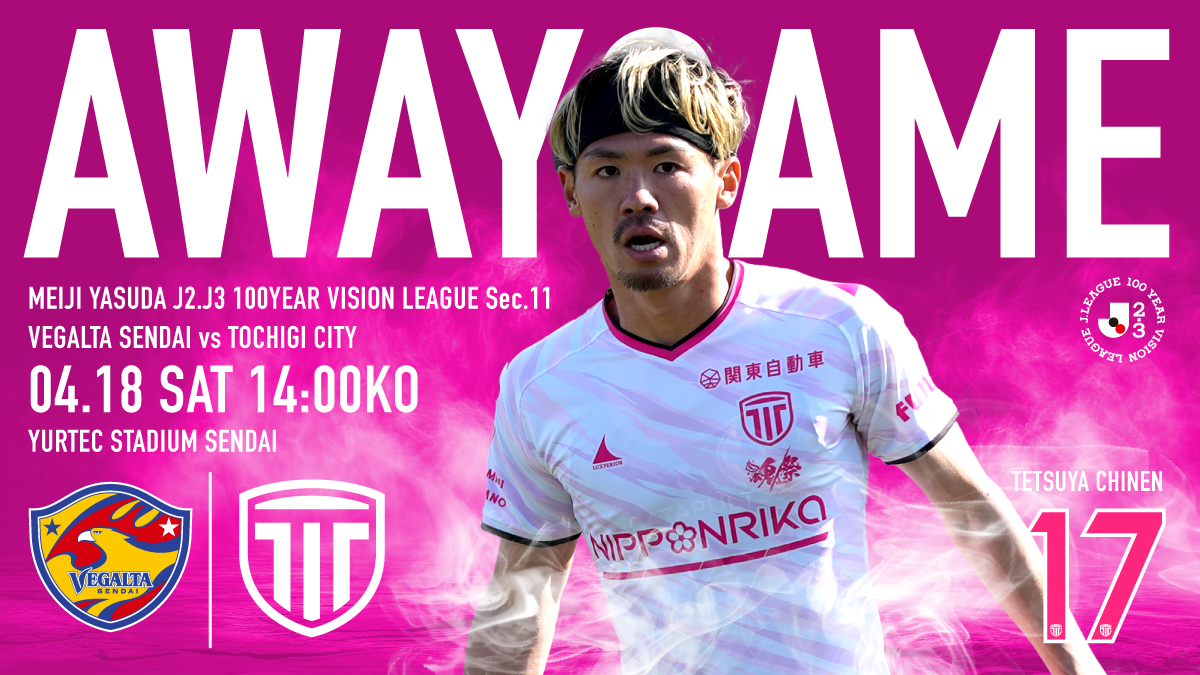 4月18日(土)に開催される、明治安田J2・J3百年構想リーグ第11節 ベガルタ仙台 vs 栃木シティ(14:00キックオフ@ユアテックスタジアム仙台)の現地観戦情報をお知らせします。