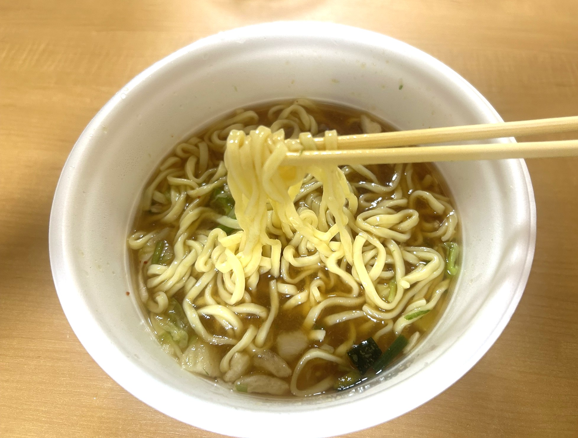 スープの“あんかけ感”をさらに改良したとのことで、とにかくスープのとろみに感動です。また、ノンフライ製法の極太麺は、ゆでたてのようなモチモチ&つるんと食感で、食べ応えも抜群でした。