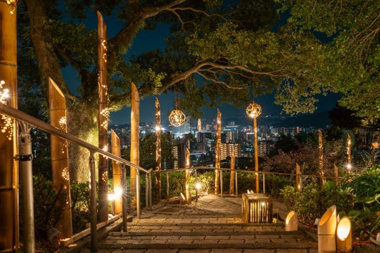 地域の課題である「放置竹林」対策として、ホテルスタッフが現地に赴き地元の方々と共に竹を伐採・加工し「竹灯籠」を制作。LED電球100%による省電力化に加え、樹木に直接電線を巻き付けない手法を採用するなど、環境負荷を徹底的に抑えながら趣のある庭園を演出しました。地域の負の遺産を、県内外のお客様から好評を博す価値ある観光資源へと転換するモデルを確立しました。
