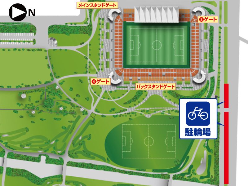 予約制駐車場サービスを導入し、ホームゲーム当日の駐車場不足の解消やスタジアム周辺の交通渋滞緩和・違法駐車防止を目指しています。