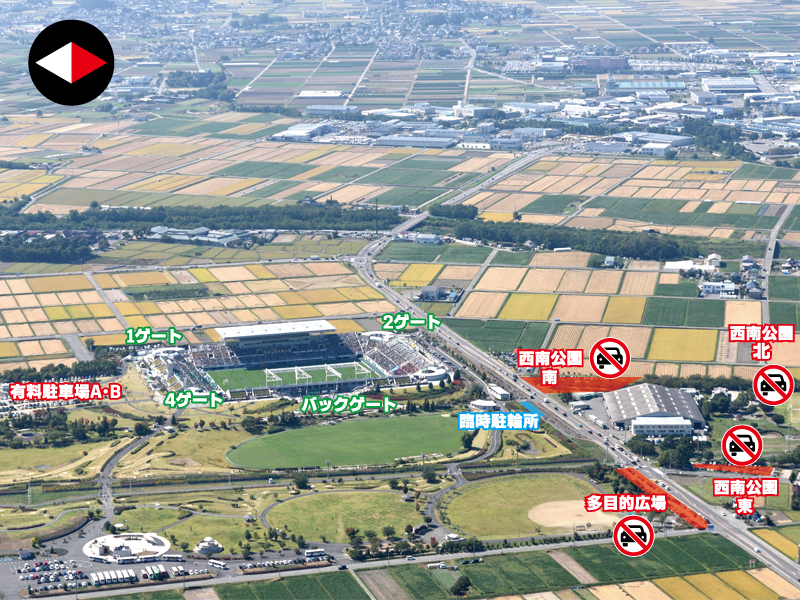 試合終了後は、各駐車場・周辺道路はたいへん混雑いたします。