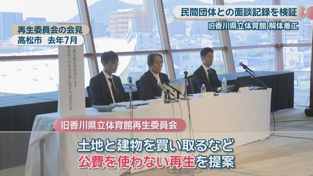 旧香川県立体育館を巡っては2025年7月、建築家らで作る再生委員会が土地と建物を買い取るなどして公費を使わずに再生することを県に提案しました。