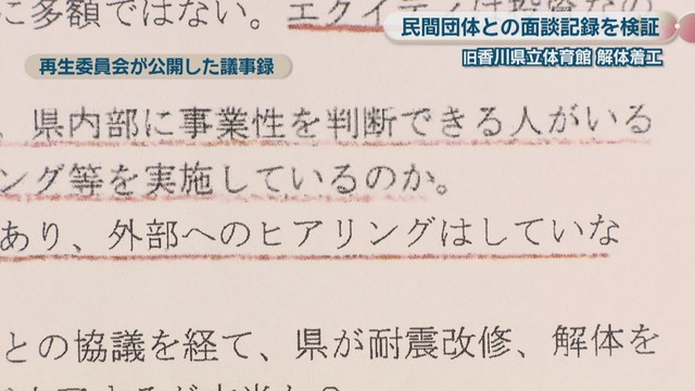 香川県は再生の提案を受け入れませんでしたが、その判断にあたって「第三者の意見を聞いていない」という事実を公文書にあたる「面談記録」に残していませんでした。