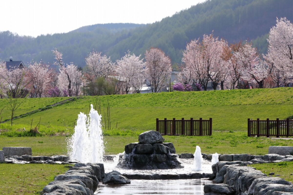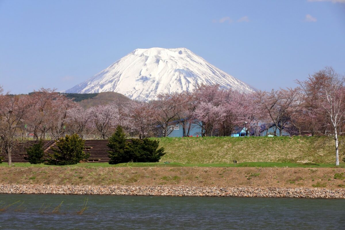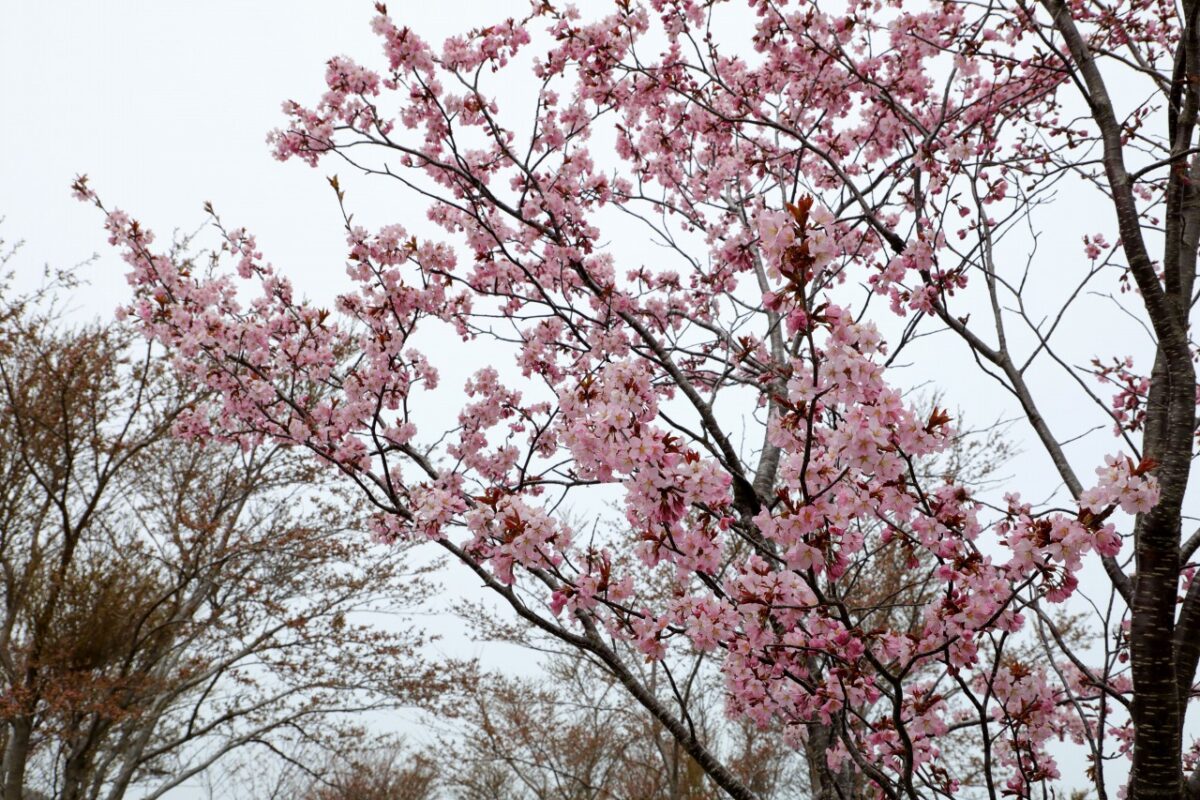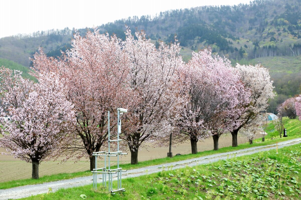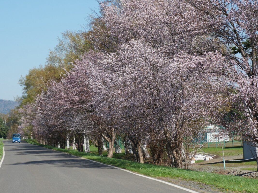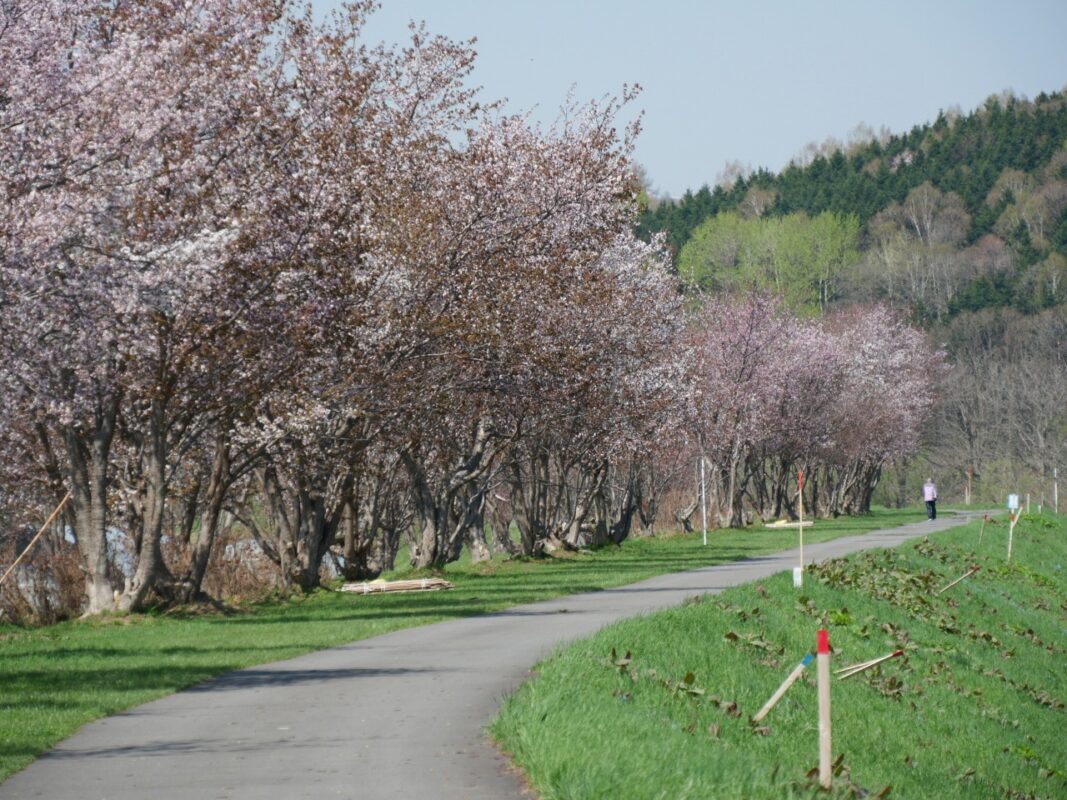 春になると、北海道の川沿いにもたくさんの桜が咲きはじめます。