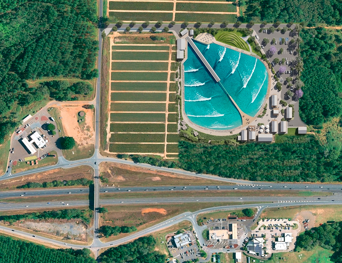 オーストラリア・クイーンズランド州サンシャインコーストのグラスハウス・マウンテンズに建設予定のサーフパーク「Surf Farm(サーフファーム)」