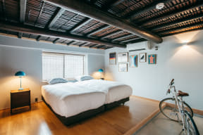 古民家宿「RITA御所まち」の客室。万年筆でのチェックイン体験や庭園を望む宿泊者限定ラウンジも人気。夕食はツツジの赤をイメージした前菜から始まる「葛城春コースディナー」で、地酒「風の森」のペアリングも楽しめるかつては自転車屋だった昭和レトロな趣の宿「宿チャリンコ」。プランでは電動自転車をレンタル可能だが、自前の自転車持ち込みOKな客室もあるサイクリングやまち歩きで汗をかいたあとは、宿から徒歩数分の銭湯「御所宝湯」に入浴でき、フィンランド式サウナでととのう体験も