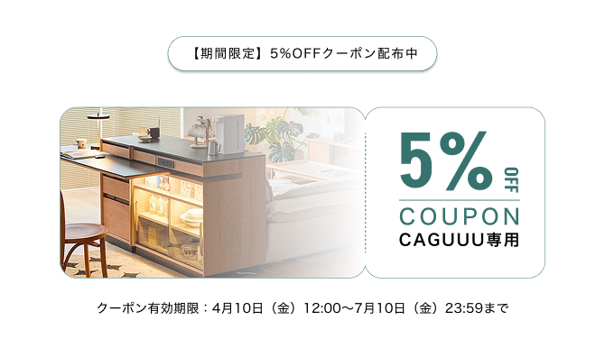 このほど、家具ブランド「CAGUUU」を展開するCAGUUUとのブランドパートナーコラボレーションを実施した。これを記念し、4月10日〜7月10日の期間、ブランドパートナーコラボレーションを開始した。これを記念し、「CAGUUU公式オンラインショップ」で利用可能な5%OFFクーポンを配布する。