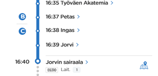 問題は、16:07 のタピオラでバスに乗るのですが、バスは次の 30 分間ゾーン B を移動することになるため、ゾーン B に 3 分間戻るために別の BC チケットを購入する必要があることです。