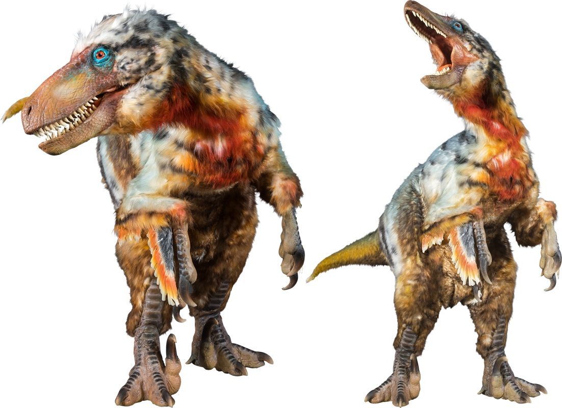 2頭登場するユタラプトル(全長4.8m)