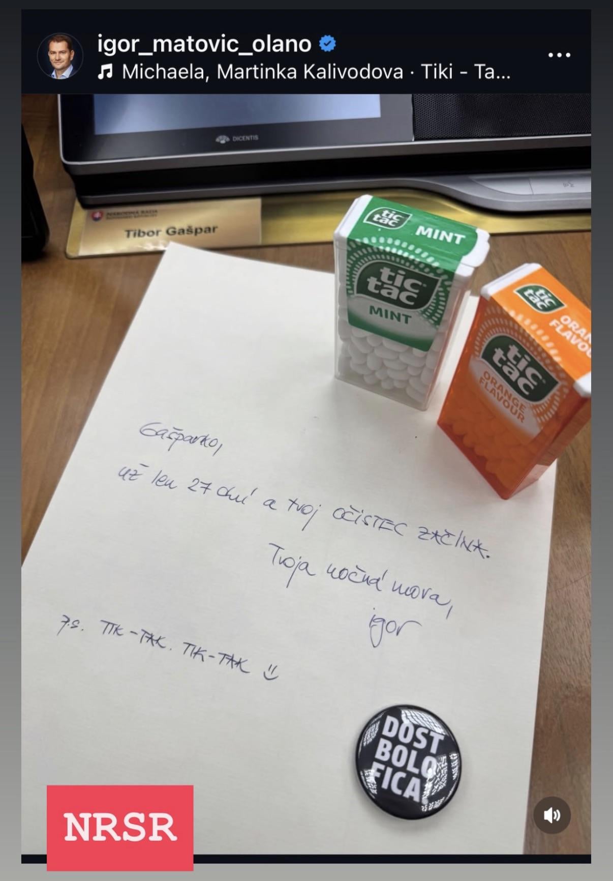 NRSRのガシュパルへのマトヴィッチのメッセージ。