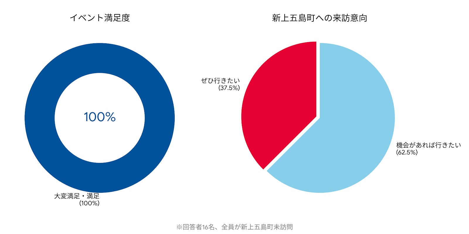 イベントでは、VRによる没入型観光体験に加え、現地からのライブ中継や特産品の提供を組み合わせることで「五感で感じる観光体験」を提供。その結果、当日参加した全員(n=16)が「実際に行きたい」とアンケートで回答し、高い来訪意向を記録しました。