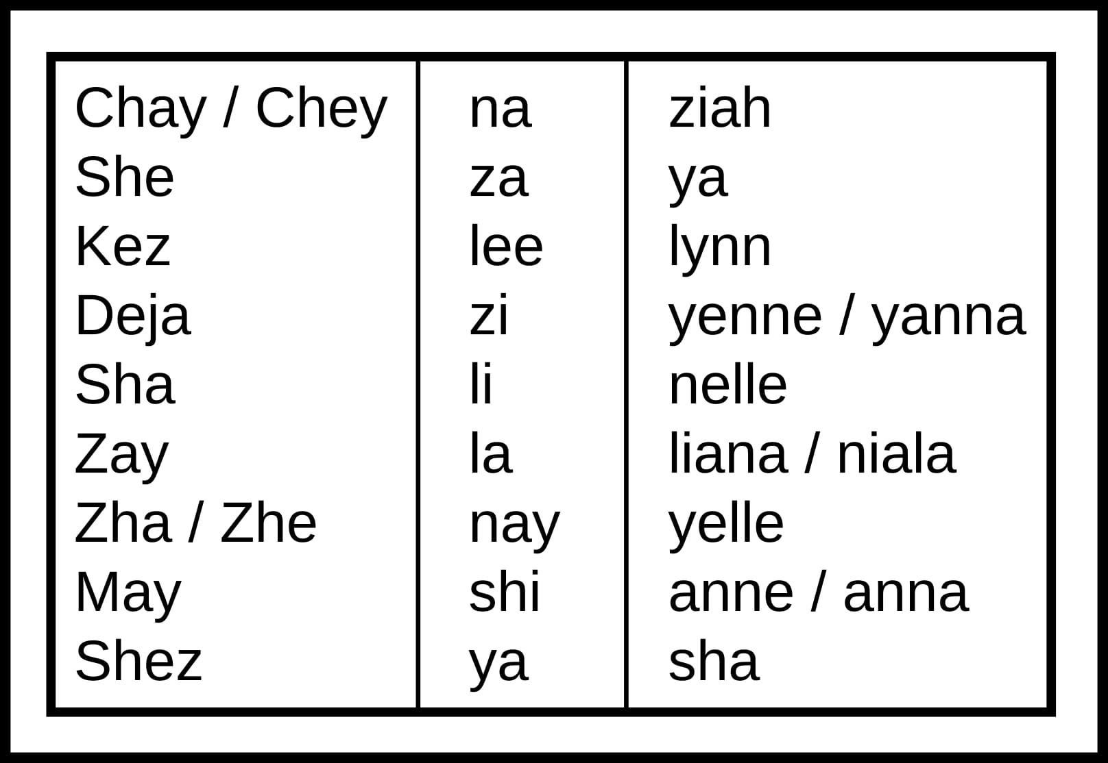 女の子の赤ちゃんを期待していて、オリジナルの名前を考えるのに苦労していませんか?早速まとめたマルタ語の女の子の名前ジェネレーターの初版をお試しください。各列から 1 音節を選択するだけです。 Chey-li-lynn と Zhe-za-ziah の皆様のお越しをお待ちしております。提案や改善は大歓迎です。 Malta