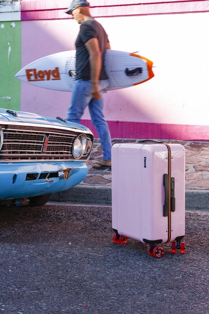 「Floyd」はドイツ・ミュンヘンを拠点に誕生したトラベルケースブランド。1970年代のカリフォルニア・ヴェニスビーチのスケートカルチャーからインスピレーションを得たデザインが特徴である。ブランドの象徴でもあるスケートボードウィールから着想を得たキャスターは、優れた走行性とインパクトのあるデザインを兼ね備えている。カラフルなボディカラーと交換可能なウィールにより、自分だけのスーツケースへカスタマイズできる点も魅力である。