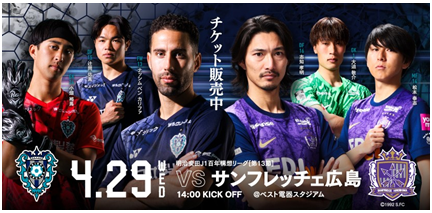 4月29日(水・祝) 14:00キックオフ サンフレッチェ広島戦