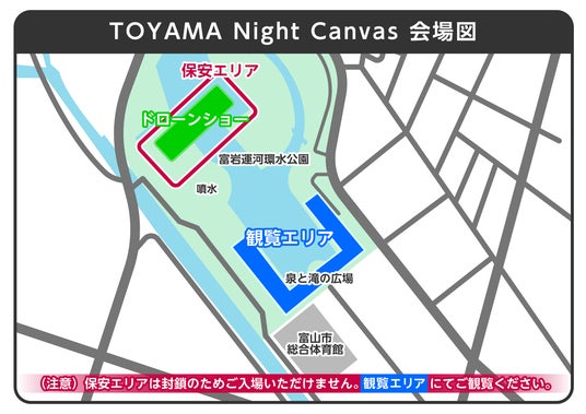 株式会社ドローンショー・ジャパン(石川県金沢市、代表取締役:山本 雄貴)主催によるドローンショー「TOYAMA Night Canvas(トヤマ・ナイト・キャンバス)」を、2026年4月24日(金)に富山県富岩運河環水公園(以下、富山環水公園)にて開催いたします。富山環水公園初開催となる今回は、B.LEAGUE B1リーグに所属するプロバスケットボールチーム・富山グラウジーズと、同公園を管理する環水共創パートナーズ (共同企業体)との共催で実施いたします。