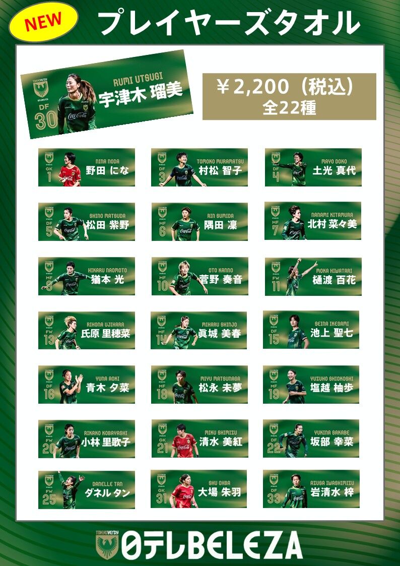 【デザイン】東京ヴェルディベレーザ所属22選手