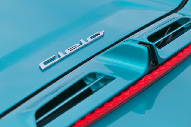 エンジンルーム上の空気孔とcielo(イタリア語で空の意味)のネームプレート。