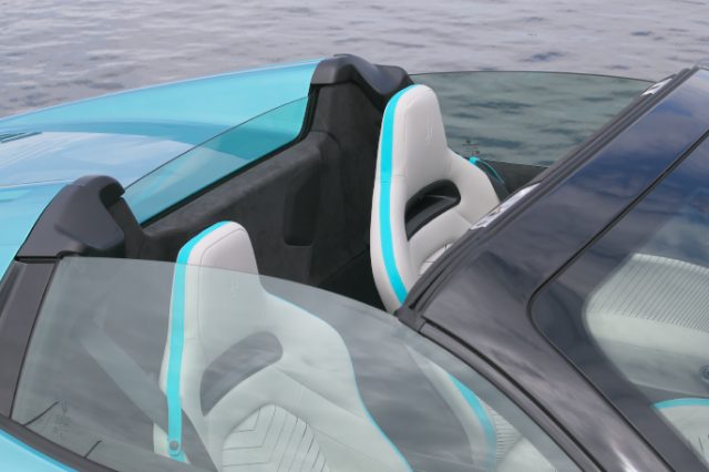 屋根を開けたときの座席は開放的。座席のトリムなどの色使いがおしゃれ。
