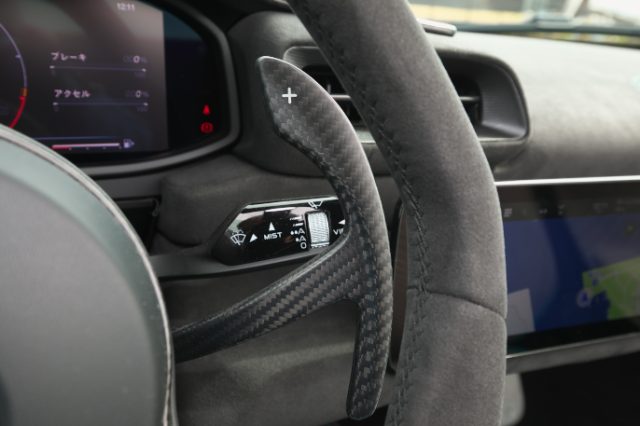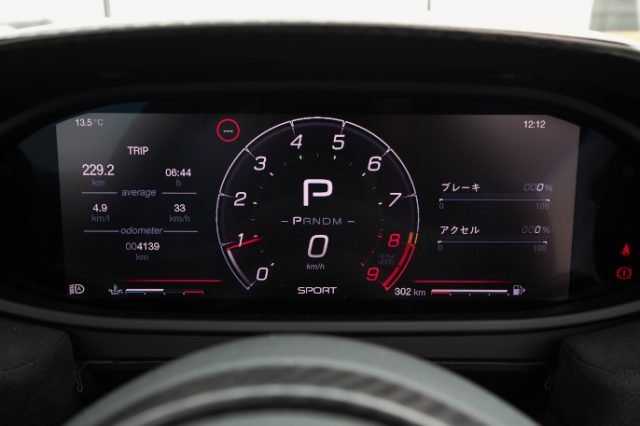 ドライビングモードはwet/GT/sport/corsa/ESCoff。どのモードもハンドルは重いが、接地感があり、レーシングカー育ちを感じさせる。乗り心地も硬さはあるが目地での突き上げのキツさもなく、フラット感がある。