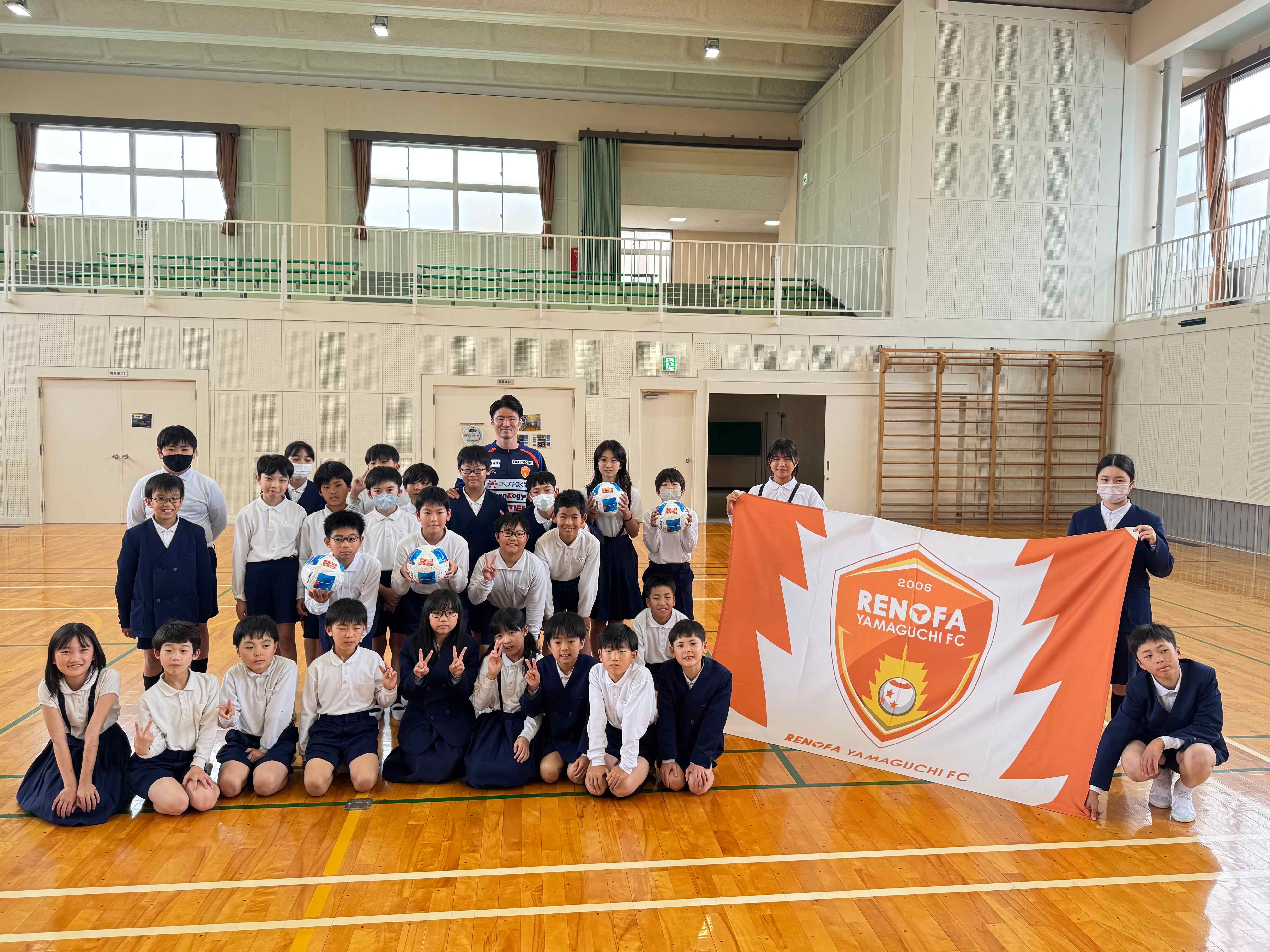 4/15(水)明治安田J2・J3百年構想リーグの2月のゴールを代表して、亀川諒史選手が山口市立小郡南小学校を訪問し、ボールの寄贈を行いました!